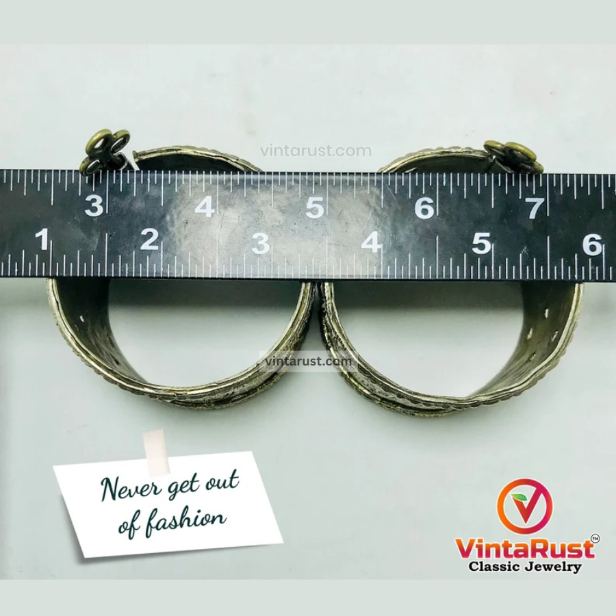 This vintage silver-toned elegant cuff is a unique addition to our collection of vintage and antique jewelry items. This delicately crafted tribal ornament has magnificent design crafted on it. The rustic color of this antique handcuff is completely making it a classic jewelry ornament. The hammered design on this piece of art is depicting historical vibes.