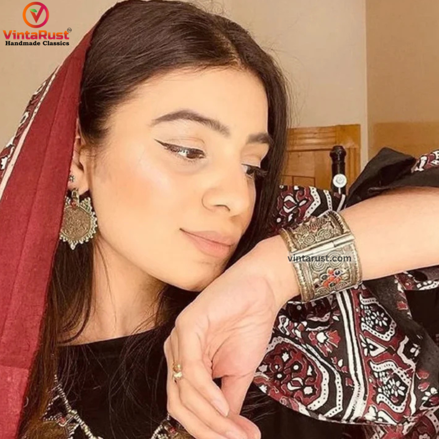 The multi color stone embedded with delicate geometrical designs has turned the Afghani style inspired ornament into a craft. This piece is handmade by the local artisans of south Asia and has a long history belonging to the originators of such kind of jewelry – The Kuchi Tribe.