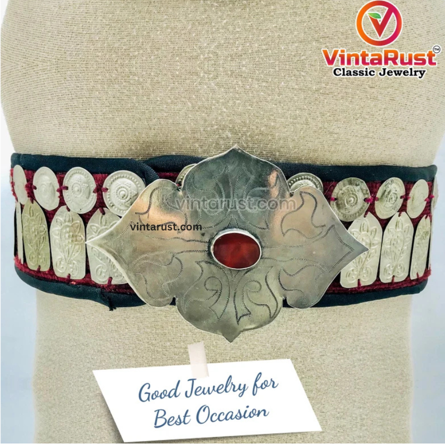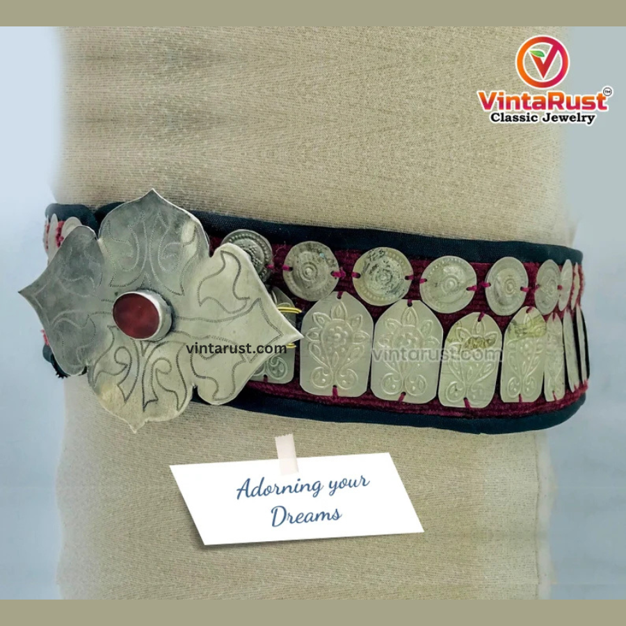 With its adjustable design, this vintage belly belt offers versatility and comfort. It can be effortlessly worn around the waist, accentuating your curves and adding a touch of glamour to any outfit. Whether you're attending a cultural event, a festive celebration, or simply looking to make a statement, this belt is sure to turn heads and make you the center of attention.Each piece is a unique work of art, embodying the spirit of Turkman craftsmanship and the beauty of traditional design. The belt not only serves as a fashion accessory but also carries with it a story of cultural heritage, making it a treasured addition to any collection.