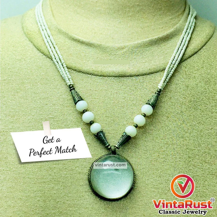 White round stone used in this elegant necklace gives protective vibes and has natural healing qualities. This elegant necklace will provide you protection while wearing.